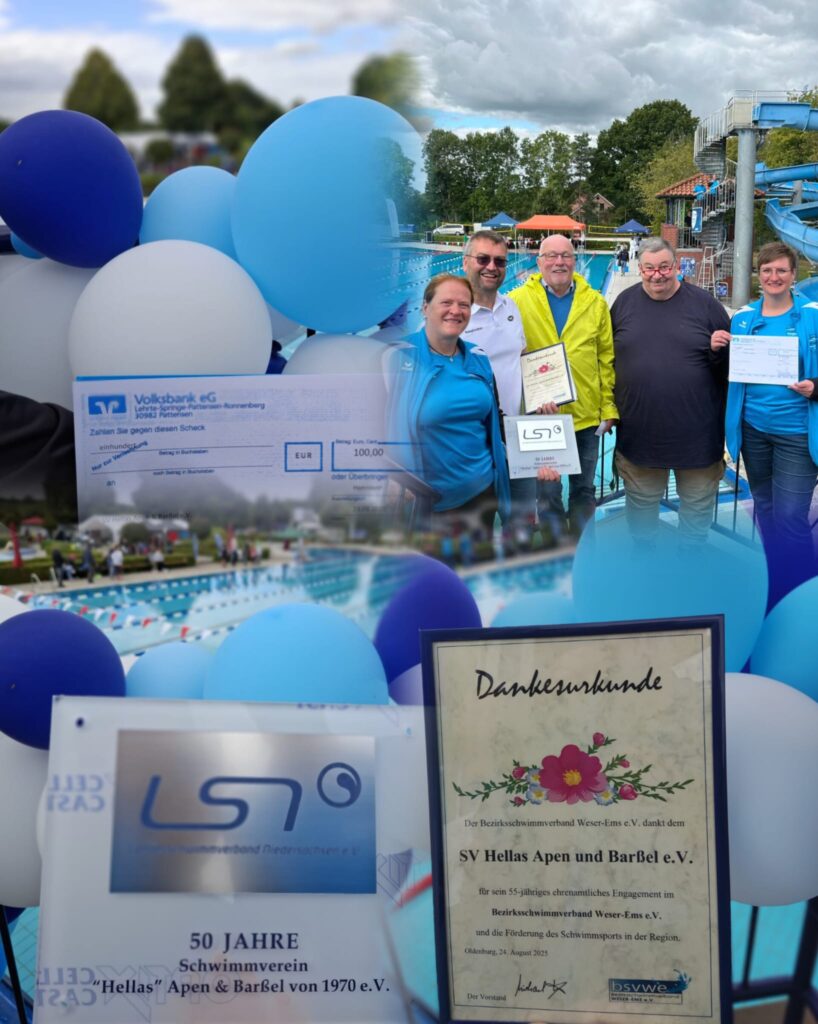 Vom 23. bis 24. August 2025 richtete der SV „Hellas“ Apen & Barßel im Freibad Hengstforde einen besonderen Jubiläumswettkampf aus. Anlass war das 50-jährige Vereinsjubiläum, das pandemiebedingt erst in diesem Jahr gebührend gefeiert werden konnte.